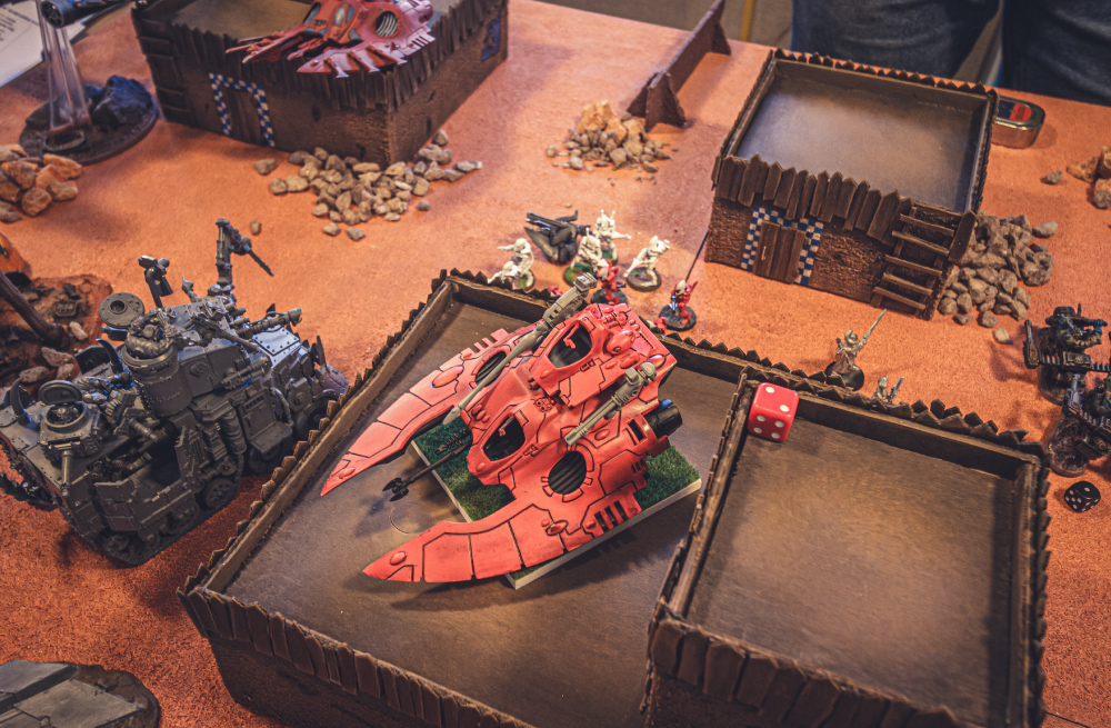 • Der Dakkajet überquert das Schlachtfeld und vernichtet mit seinen Supawummen die Dark Reapers auf dem Dach