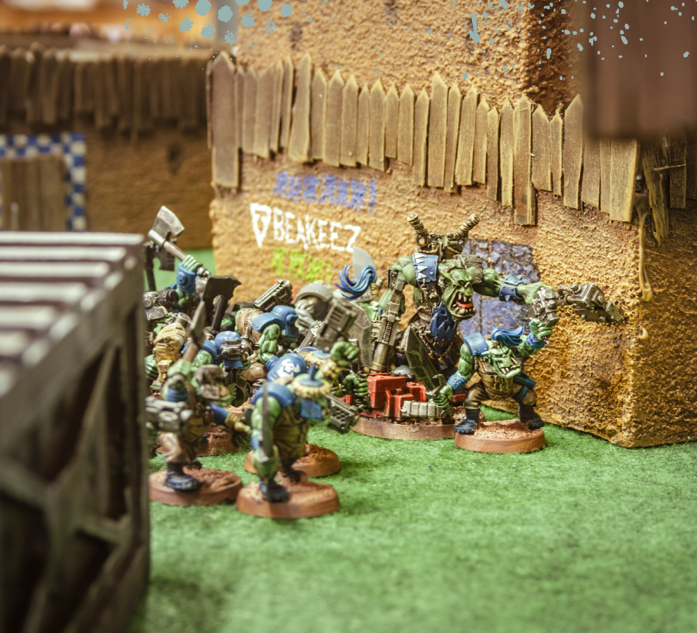 • In einem Anfall grober Selbstüberschätzung hetzt der Warboss die Boyz gegen Typhus und seine Terminatoren.